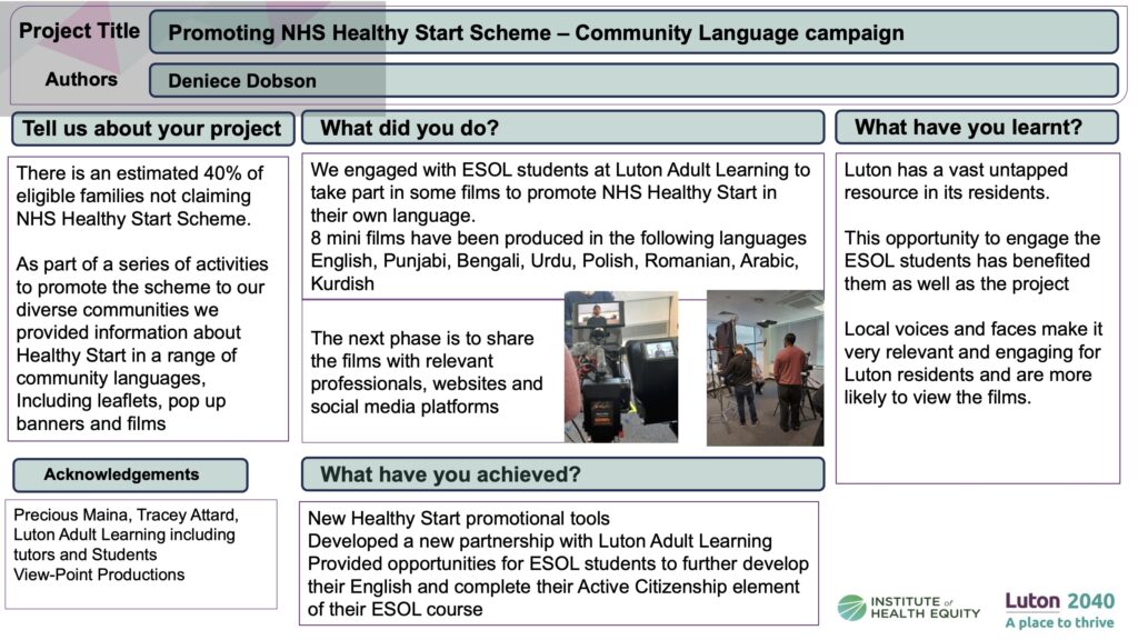 Promoting NHS Healthy Start Scheme – Community Language campaign